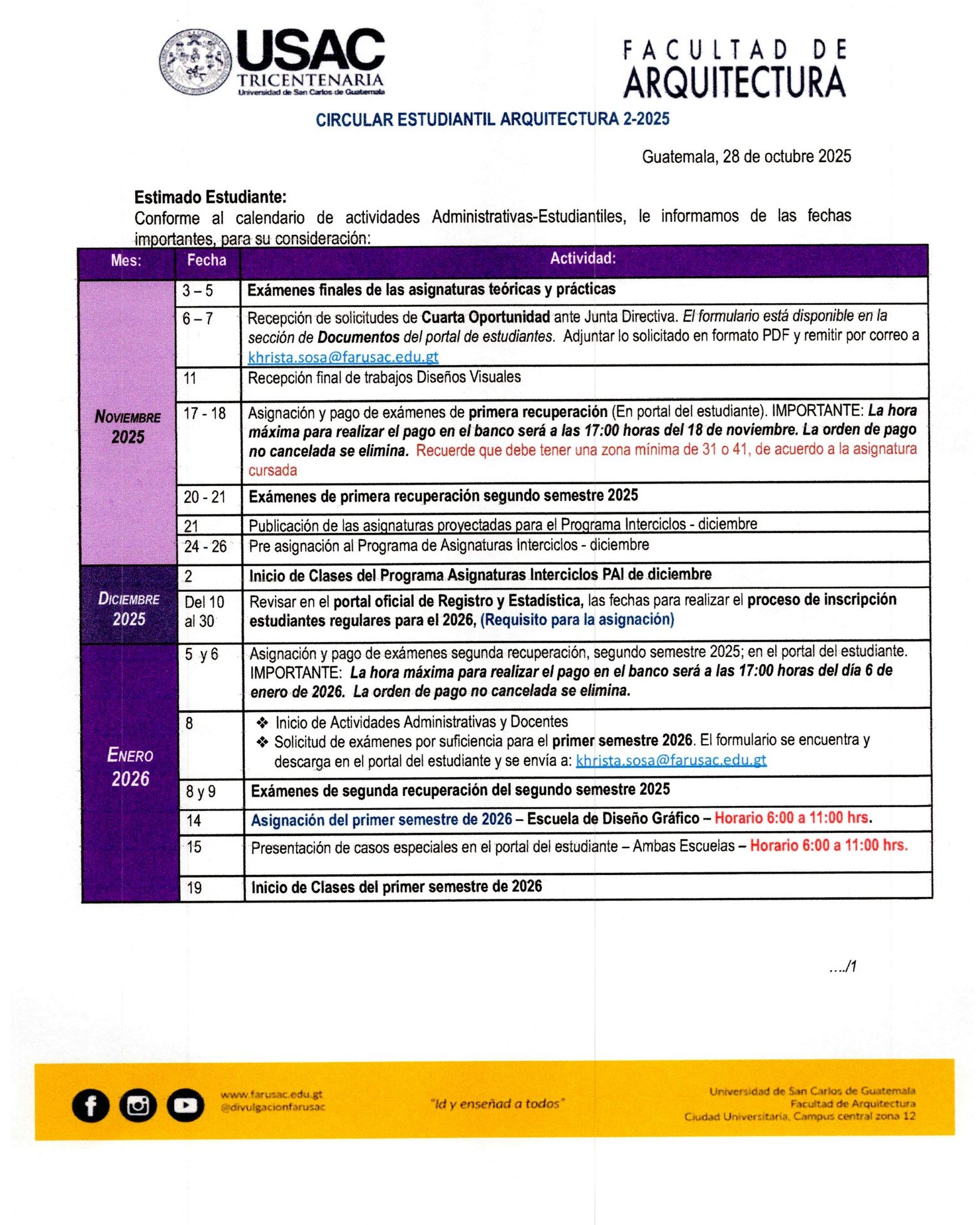 Este es un mensaje de la Comisión de Emergencias de la Facultad de Arquitectura de la USAC